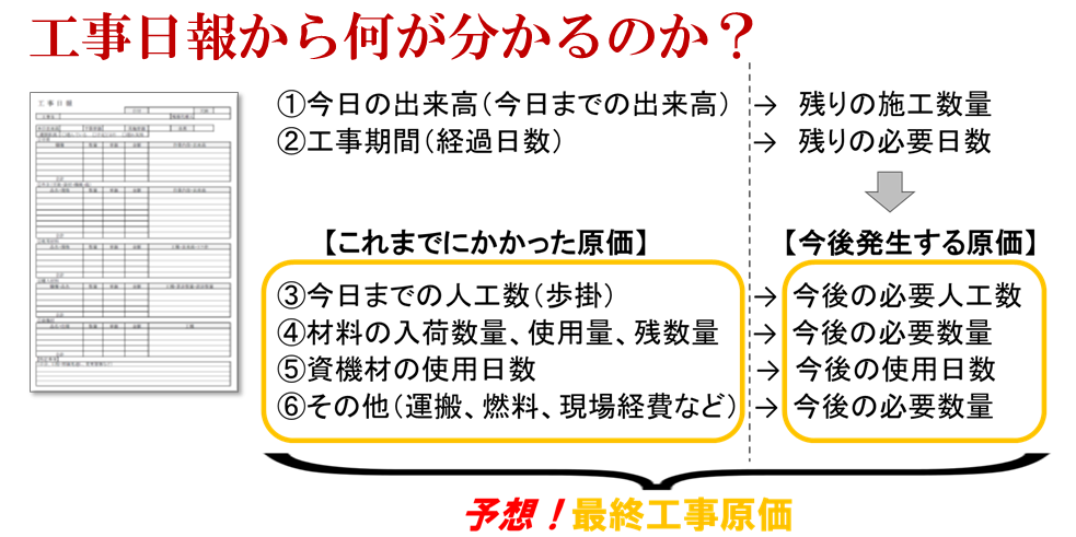 経営者が全ての現場の状況を正確に把握できるとは限りません。工事の後半になって原価率の悪化が発覚することはあませんか?経営者がいつも現場を確認できれば、こんな事にはならないと思います。しかし、建設業だと経営者が毎日現場に行くことは難しいですからね。