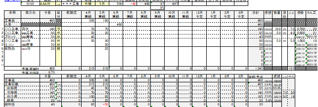 毎月、工事ごとの原価と売上(入金額など)を入力します。
